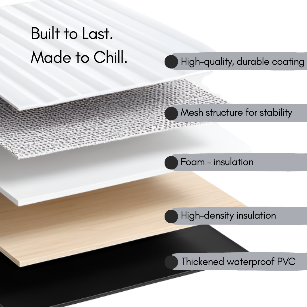 Made from multi-layer insulated PVC for long-lasting strength and temperature retention. -